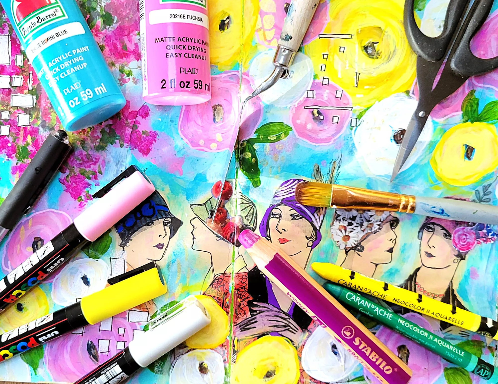 Art journaling är en visuell dagbok, där du kombinerar färg, form och ord helt på dina egna villkor. Här finns inga rätt eller fel – bara möjligheter att utforska och njuta av skapandet i dess renaste form. Fokus ligger på den kreativa processen snarare än på det färdiga resultatet, och din personliga art journal är endast avsedd för dig och din egen reflektion. Genom varje sida kan du uttrycka känslor, tankar och idéer, och skapa en unik samling av bilder och texter som representerar just din resa som konstnär. Med art journaling kan du släppa loss din fantasi och ge utrymme för spontanitet, vilket gör det till en fantastisk aktivitet för både nybörjare och erfarna konstnärer.